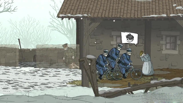 1、一段漫画风格的冒险:从法国乡村郁郁葱葱的森林到黑暗的战壕与下雪的田野,这部动人的游戏作品以独特的色调和艺术风格带领玩家回到那段曾经的历史当中。