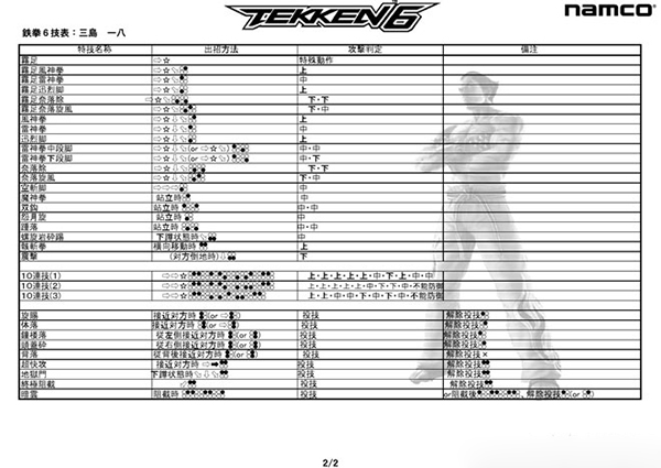 6、铁拳无轻重攻击之分,1234(也就是ABCD)分别对应左拳右拳左脚右脚。多个按键搭配方向结合形成铁拳人物的固有技,