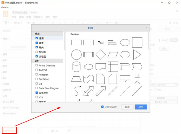 2、提供了多种图形供用户挑选,如箭头、基本、通用等;