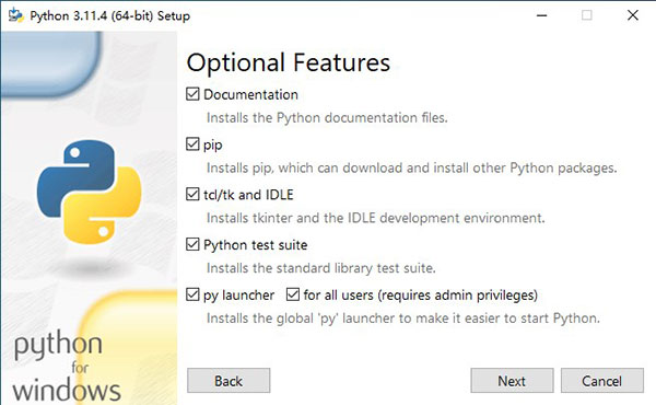 2、点击下一步,选中安装组件,特别要注意选上pip和Add python.exe to Path