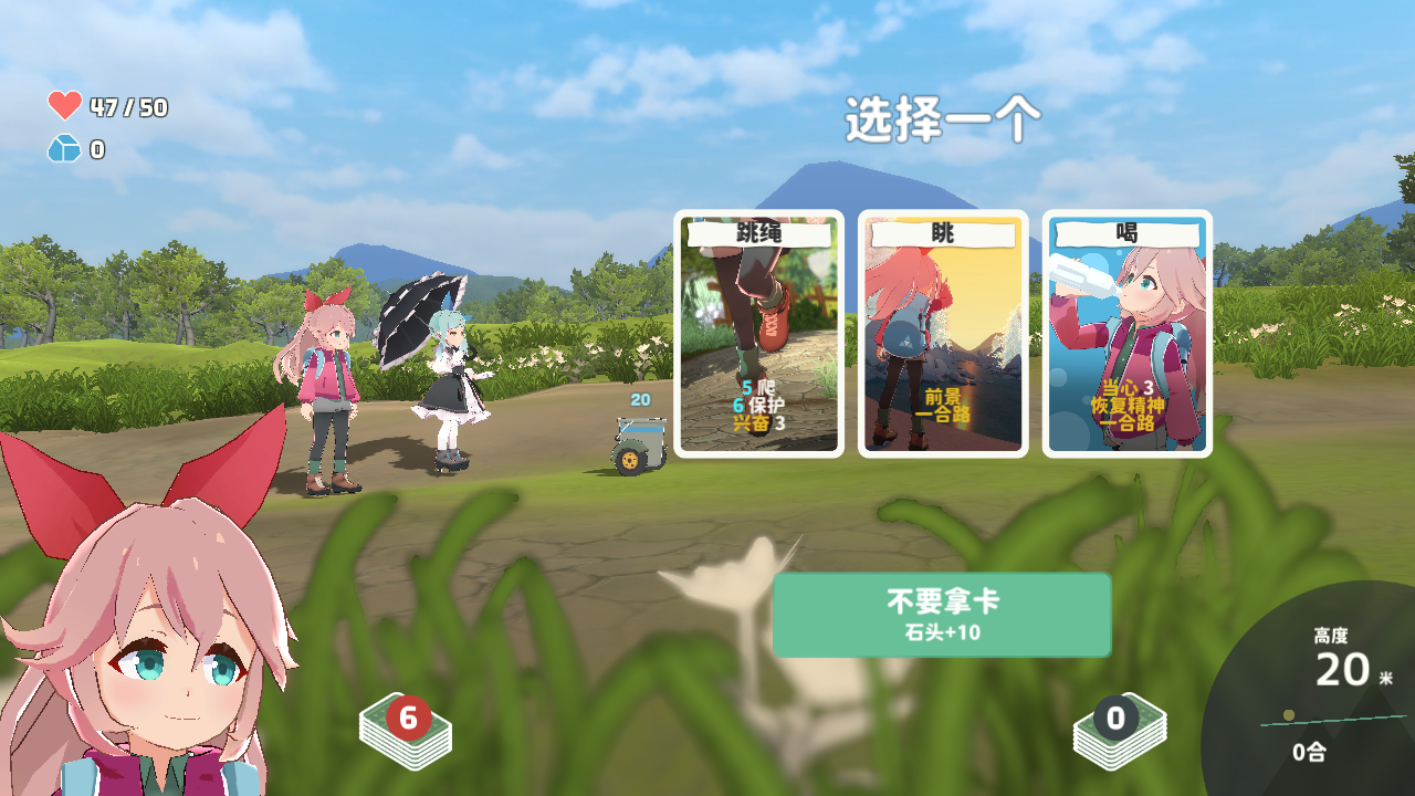 山札二合处(Yamafuda 2nd station)是一款休闲卡牌策略类电脑游戏,讲述了一个女孩在说出“想爬山”的愿望后,与同伴立即开启一段说走就走的登山之旅。游戏中,玩家需要通过收集具有不同特殊能力的卡牌来构建专属登山牌组,每回合从随机出现的三张卡牌中选择一张,并执行诸如向上攀爬、恢复体力或隐藏宝藏等行动。除了卡牌系统之外,山札二合处电脑游戏内玩家还可以利用登山途中收集的石头制作登山绳、登山杖等实用装备。合理搭配卡牌效果与装备属性,是克服重重山险、最终成功登顶的核心关键!