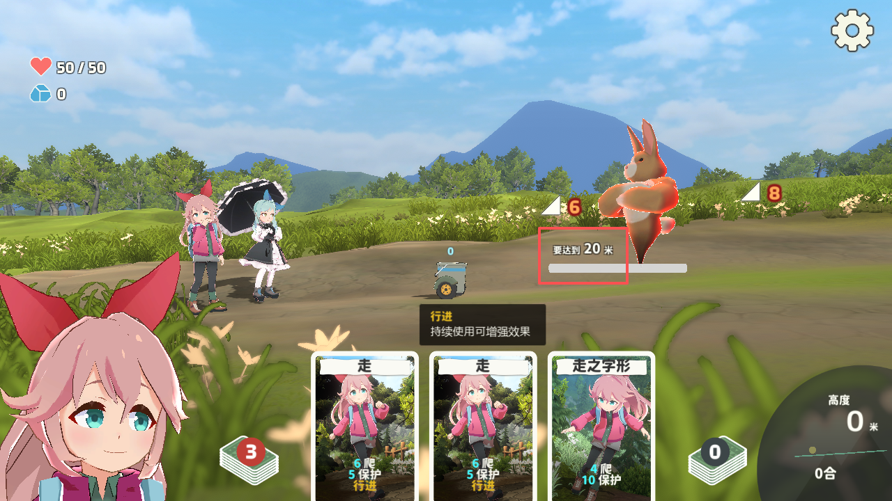 1、游戏将最终的目标具象化成一只强壮的兔子,玩家需要再上攀爬20米,通过屏幕下方的卡牌。