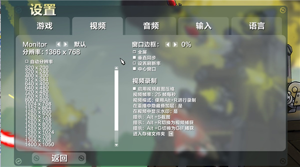 5、视频设置中,玩家可以调整游戏分辨率和画质;