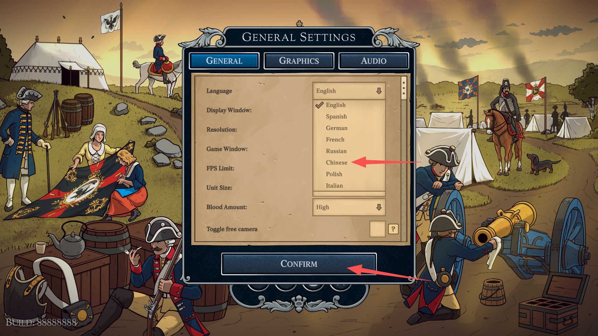 4、在其中找到“Chinese”,点击即可,再点击“CONFIRM”,随后重启游戏。