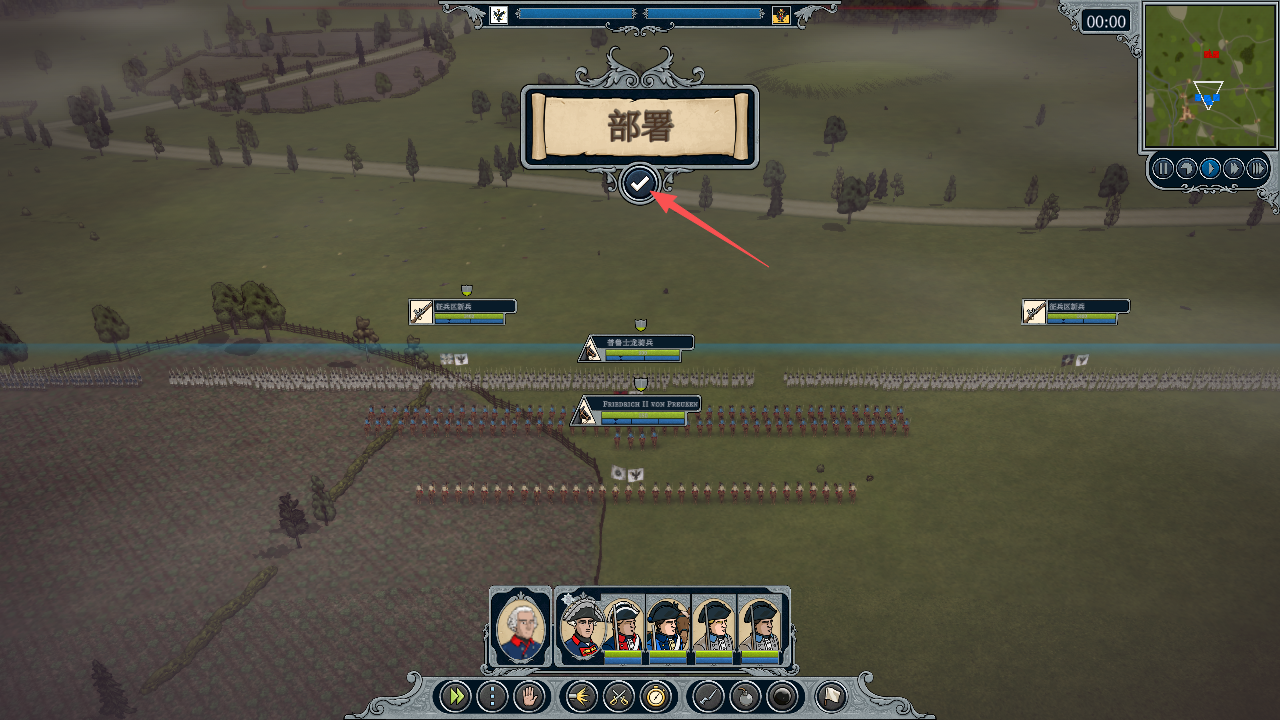 9、完成军队的位置部署后,就可以点击屏幕上方的“勾”标识。