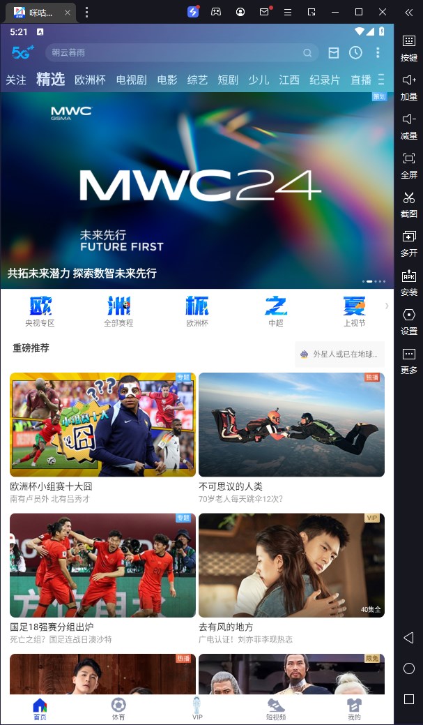 咪咕视频电脑版是一款需要借助模拟器在PC端运行的视频播放软件。海量精彩影视资源,开启电脑全屏观看,无需下载无需缓存,只要用户开启影视资源,就能实现边播边加载。相对于普通的视频播放软件来说,它具有更加稳定的资源,毕竟咪咕视频也上线那么多年了,肯定功能什么的都是比较完善的,同时聚合了全网的视频资源,提供免费播放服务,找到感兴趣的影片直接进行在线播放,具有高清晰的视频画质,用户能够轻松的获得非常不错的观影体验。在电脑上看影视,无论是画质还是屏幕大小,都比在手机上看要更舒服,并为您提供电视剧、电影、动漫、音乐、新闻、娱乐、游戏、原创搞笑等等海量视频内容,高清流畅播放,极速离线缓存。