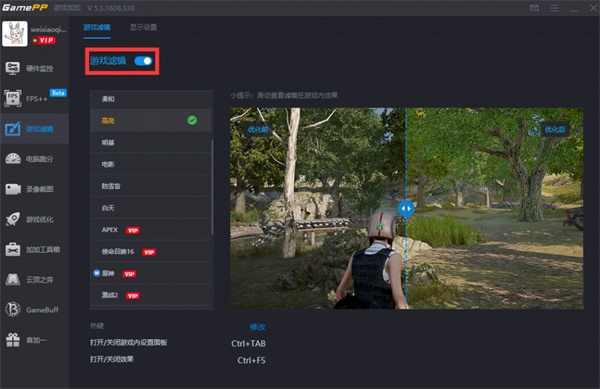 游戏加加AI滤镜,根据当前游戏内的画面色彩和亮度,自动生成目标画质方案;