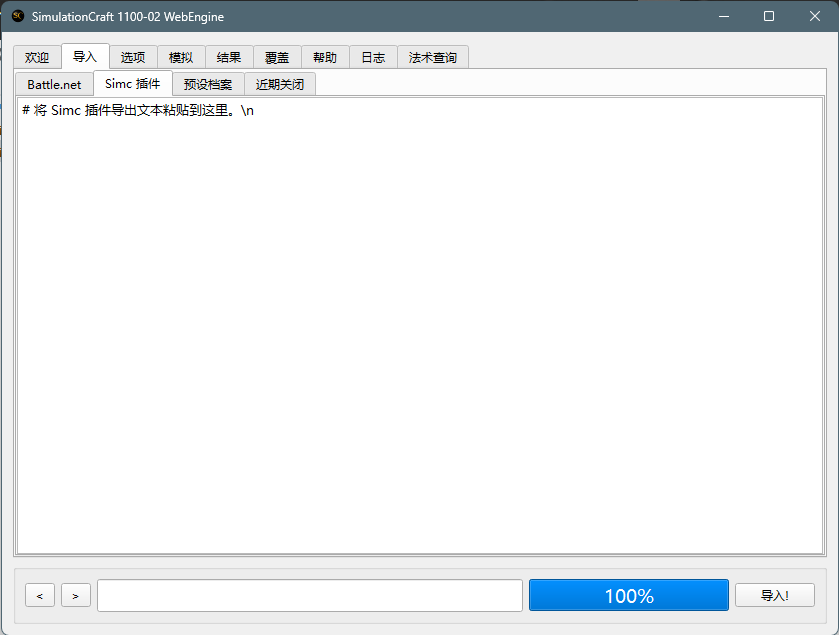 由于国服没有英雄榜,所以玩家数据需要手动导出,在游戏内使用/simc命令即可调出玩家数据。