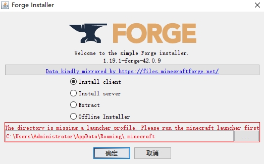 1、双击下载的Forge安装文件(通常为.jar格式),选择“Install Client”模式,并手动指定游戏目录(默认路径为.minecraft文件夹)。