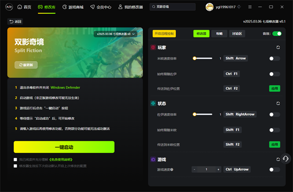 双影奇境七项修改器功能列表