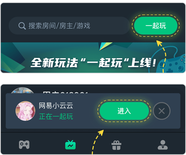 -如何开启一起玩:在一起玩首页,点击“开游戏”,或进入好友房间,即开启一起玩!