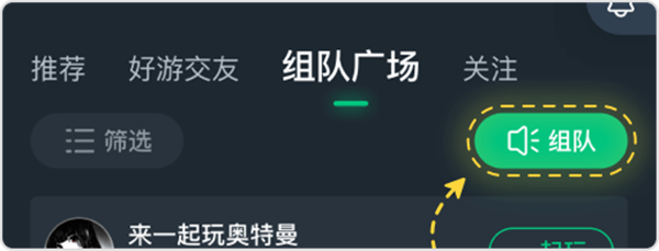 -组队广场:选择一款或多款喜欢的游戏,发布组队广播。