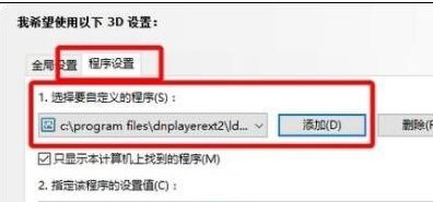 3、在“程序设置”下方添加雷电模拟器,然后使用最佳性能即可。
