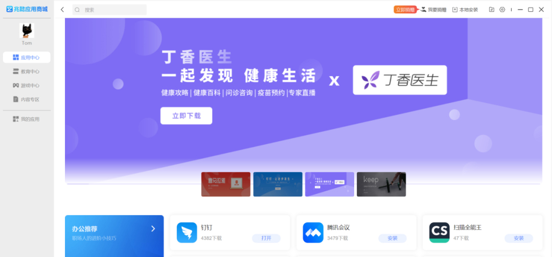 在兆懿上有两种安卓应用安装方式,第一种是通过自带的应用商店在线安装。