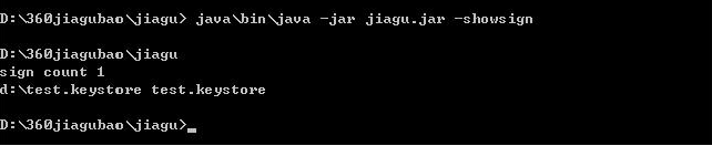 查看当前签名keystore信息“java\bin\java -jar jiagu.jar –showsign”