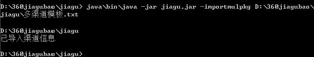 5、导入渠道信息,“java\bin\java -jar jiagu.jar -importmulpkg<mulpkg_path>”