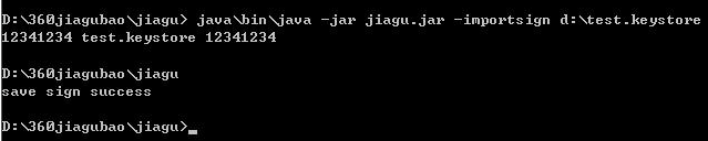 4、导入签名信息,在命令窗口输入“java\bin\java -jar jiagu.jar -importsign”