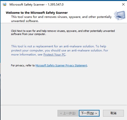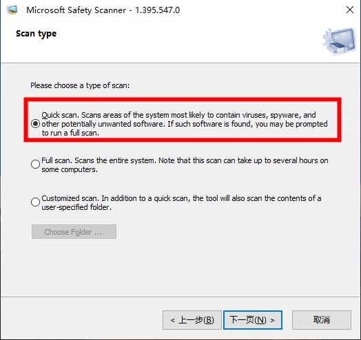 1、Microsoft Safety Scanner下载后直接启动即可