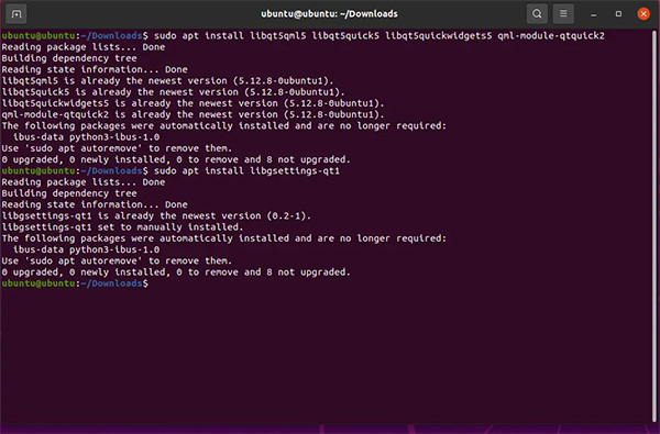 sudo apt install libqt5qml5 libqt5quick5 libqt5quickwidgets5 qml-module-qtquick2