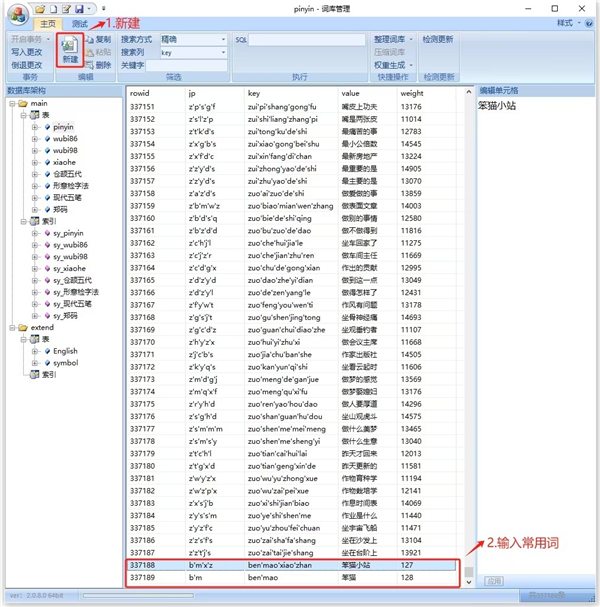10、动态调频;开启后,输入时对应的词频weight会逐渐增大,表现出该字词在候选中的位置出现变化。