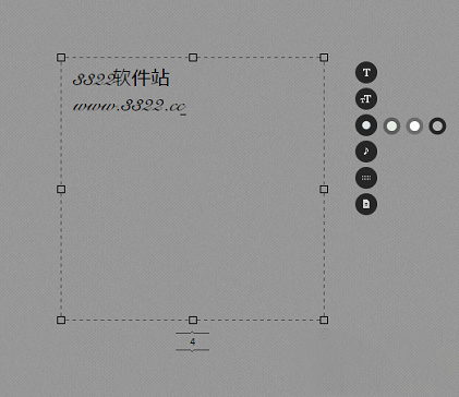 软件界面非常简单,输入框大小可以调整,鼠标移至屏幕上方会出现菜单栏,鼠标在屏幕内移动会出现六个选项按钮,依次为:字体、字号、主题背景、音乐背景、键盘音和保存按钮。界面右上方有关闭和最小化按钮