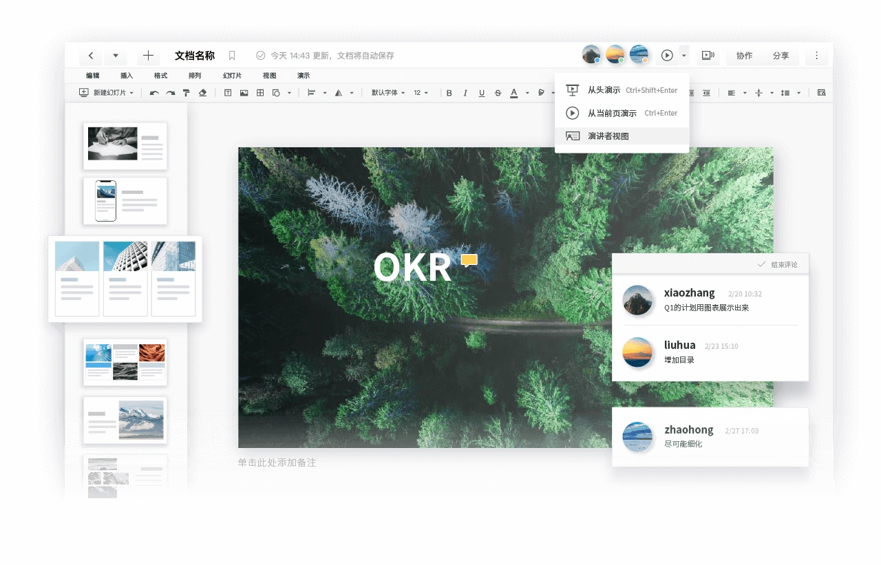 2、图案段多成员共同编辑文档,减少反复传递的低效工作