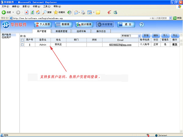 多用户支持:支持多用户同时访问,各用户凭帐号密码登录。