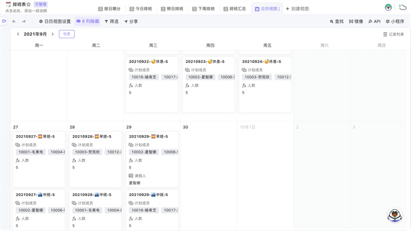 日历视图:以天为单位,清晰展示当月所有日程的视图,帮助团队和个人更好地规划日程。