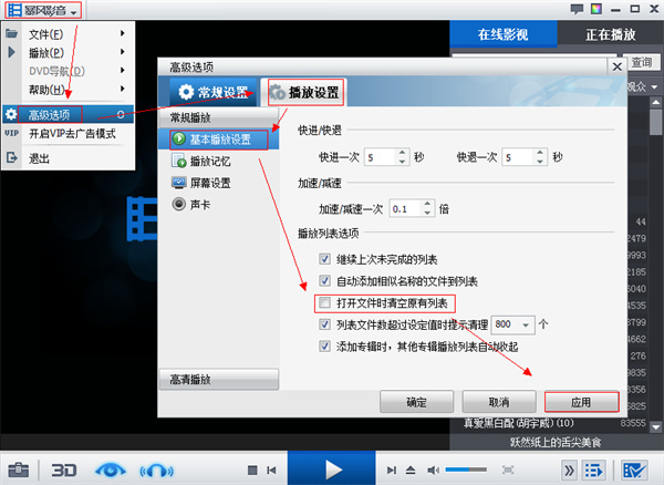 保留播放痕迹请您进入主菜单——高级选项——播放设置——基本播放设置中,查看您是否勾选”打开文件时清空原有列表”。