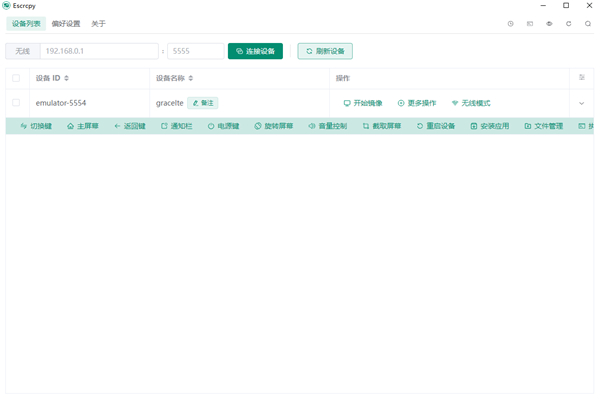2、将获得的设备IP地址和端口号输入Escrcpy,然后单击连接设备