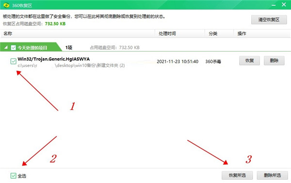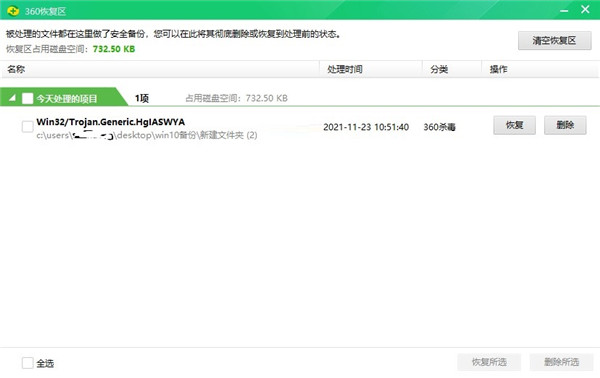 360杀毒极速版和360安全卫士共用一个文件隔离区也可以叫做文件恢复区。