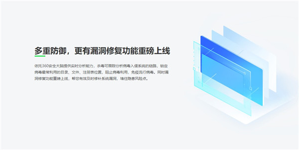 依托360安全大脑提供实时分析能力,杀毒可跟踪分析病毒入侵系统的链路,锁定病毒最常利用的目录、文件、注册表位置,阻止病毒利用,免疫流行病毒。同时漏洞修复功能重磅上线,帮您有效及时修补系统漏洞,堵住隐患风险点。