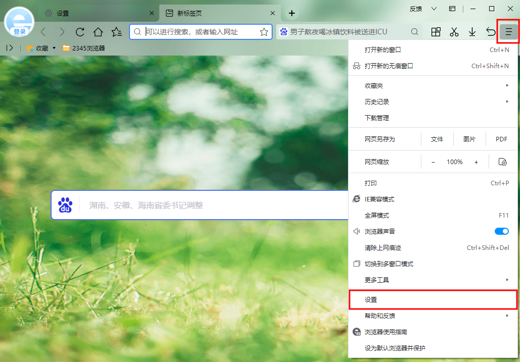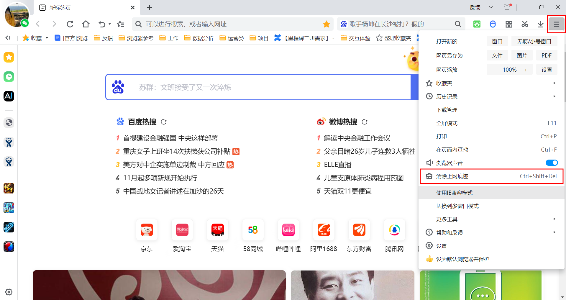 (1)点击右上角主菜单,选择清除上网痕迹。
