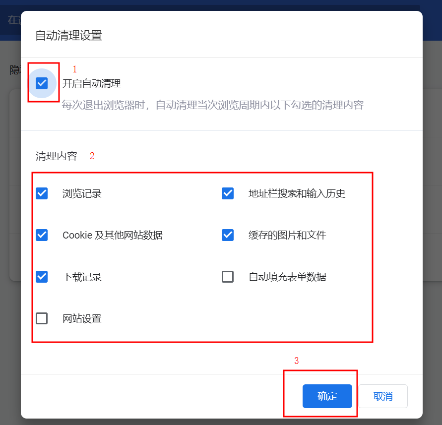 若您需要自动清理浏览器数据,请参考以下教程: