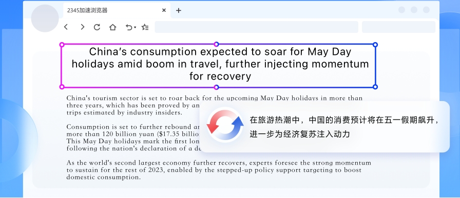 使用2345加速浏览器,您可以轻松应对各种语言场景,支持网页一键翻译和划词翻译,让您的沟通更加便捷无忧。