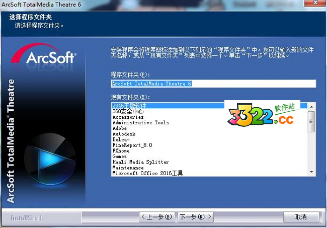 5、自定义程序文件夹额名称,命名完成安装程序会将程序图标添加到用户所自定义的“程序文件夹”中,您可输入新的文件夹名称,或从“现有文件夹”列表中选择一个