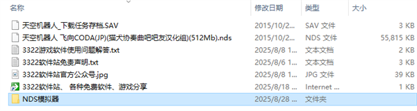 1、解压后,得到NDS模拟器文件,和天空机器人游戏文件;