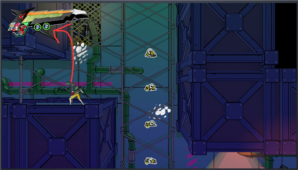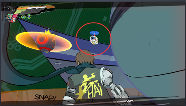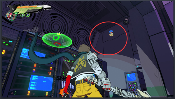 8、修好01的节点之后发现门关了,要走小门,然后就进了一个平面平台跳跃关。走过第一排竖着的激光之后先别跳下去,回头往上跳,有个隐藏房间,这里有一个包裹。