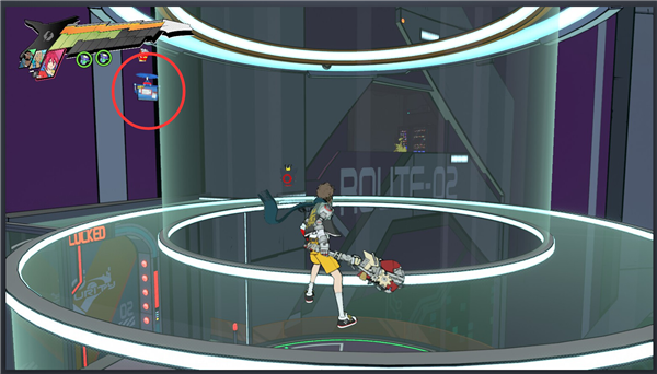 3、按剧情,第一个去修的是02通道,进门看到有一个旧型号的机器人,右边跳上去,房间里有一个。