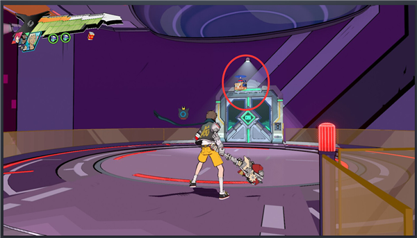 10、修完之后出来,平台开始刷怪,打完怪之后如果你在电梯上会被强行送下去,再次跳上来,绕着电梯走到一个标着??的口,跳到转圈平台上去,跳到有吸尘机器人的平台上,往右看,有一个包裹。