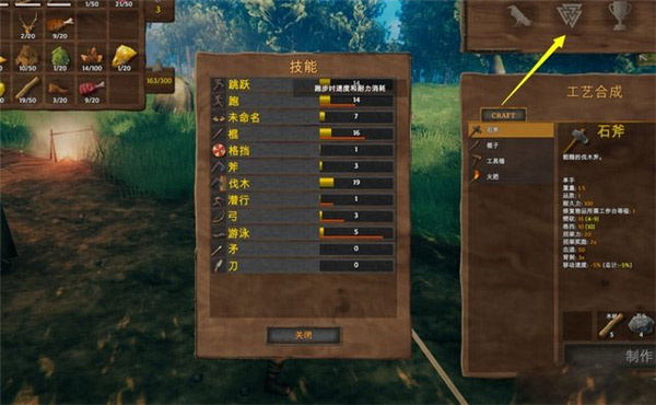 点击右上角的技能,可打开技能面板,查看当前各能力的熟练度。