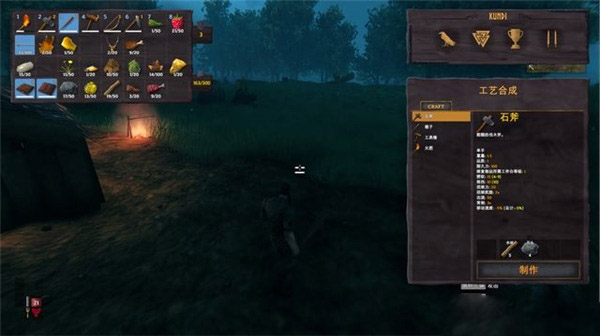右侧为合成界面,可进行物品合成,对应物品下方可查看合成需要的材料。
