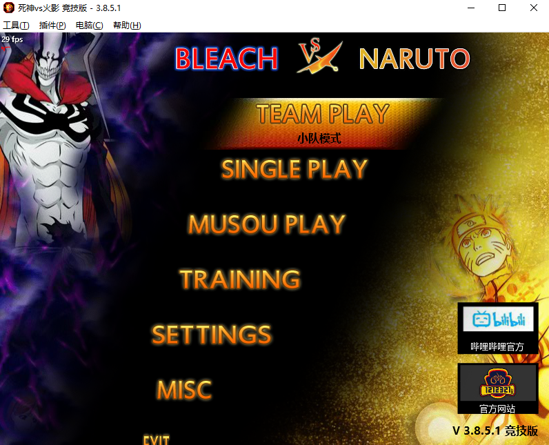 【1】死神VS火影进入游戏如果进度条不动,出现卡死可能是没有相应人物或者辅助删除了,重新下载官方版本就行了