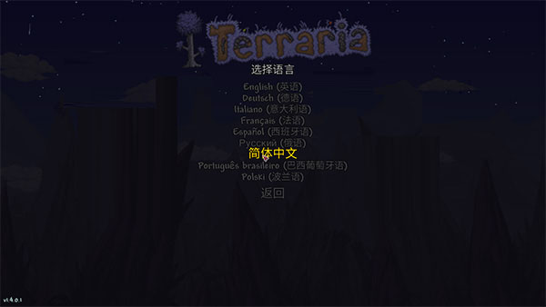 2、运行Terraria游戏,可以选择简体中文。
