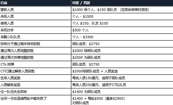 CS反恐精英1.5中文版赚钱和扣钱事件一览