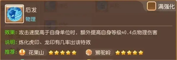入场技能选择“朗朗乾坤”、离场技能选择“百折不挠”,灵锁技配置“疾风步”以进一步提升速度面板,装备技能推荐高级防御、高级神迹、高级永恒。