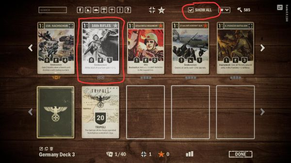 5、作为示范,我选择了德国为主力,苏联为盟友的卡组。