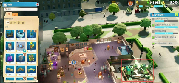5、随着等级的提升,玩家可以制造更多的房间,包括纪念品商店、员工休息室等等,玩家需要合理的规划这些房间的位置最大化利用空间,一般来说到后期博物馆的位置会非常紧张,需要玩家提前对员工区游客区做好规划和区分。