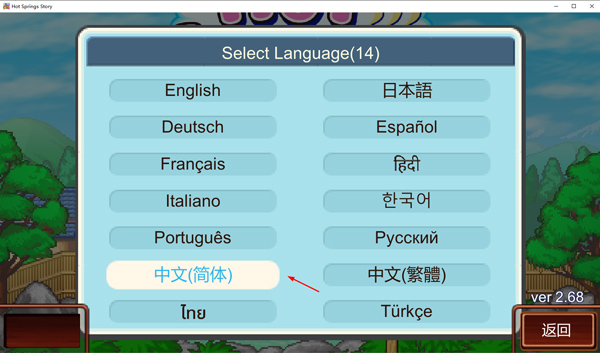 1、首先打开温泉物语游戏,点击右上角语言按钮;