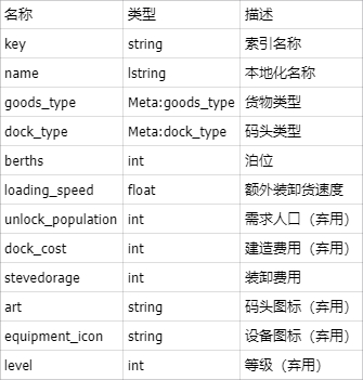 码头类型被码头表引用,用于区分装卸货码头和维修码头,这里可以更改维修码头的参数